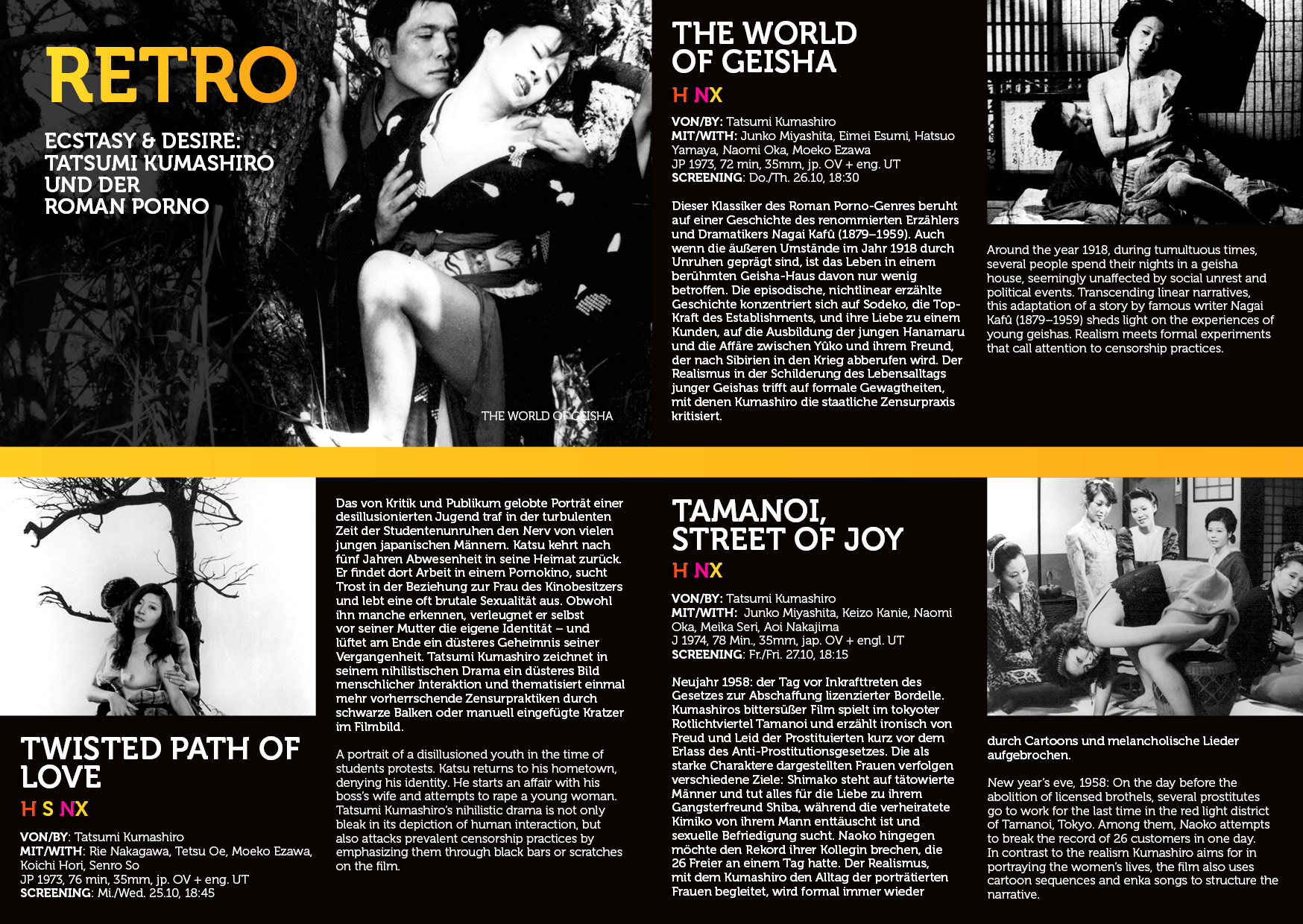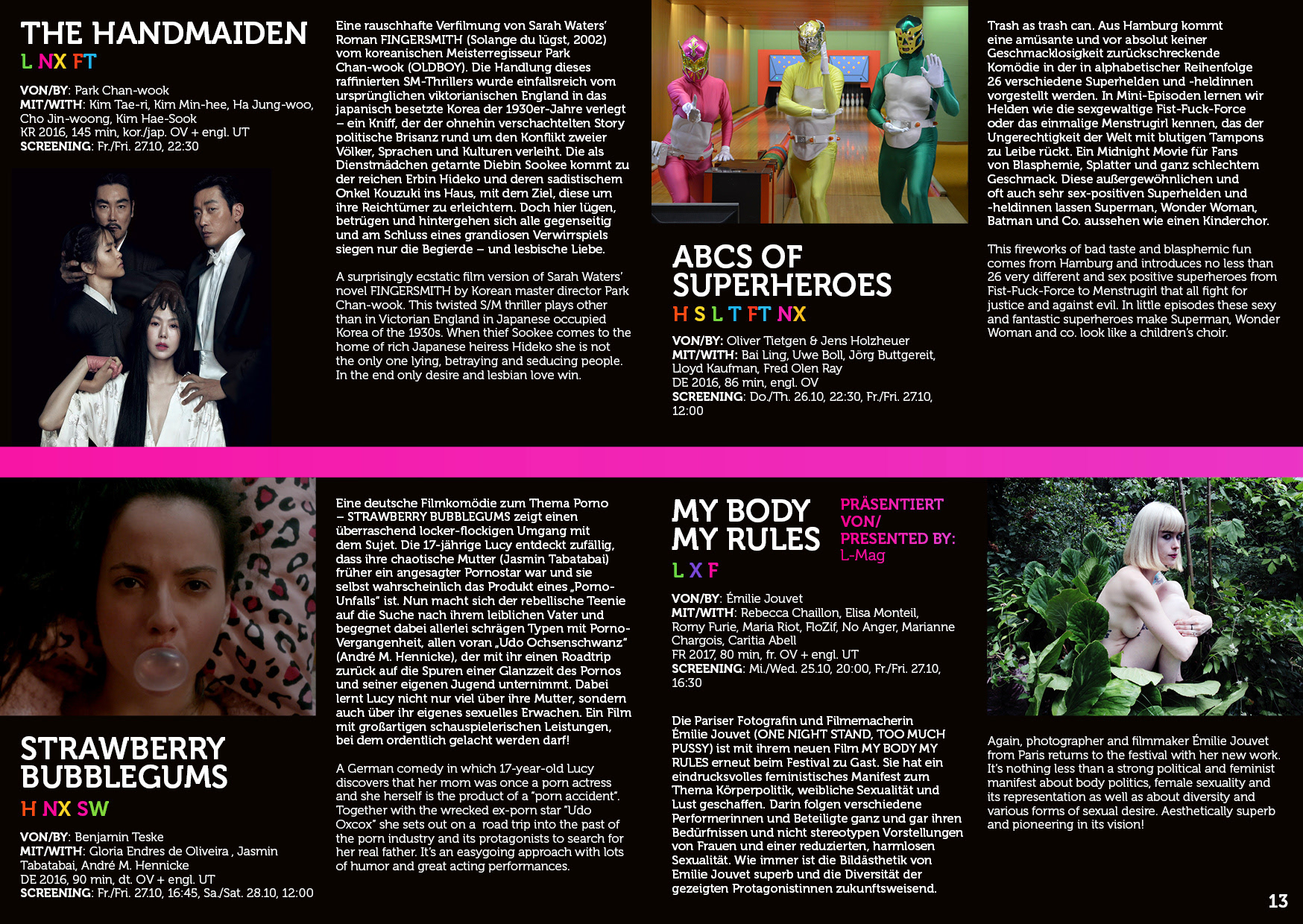 The project required a careful balance of bold, provocative imagery and clean, professional design, suitable for a festival that hosts thousands of international visitors across iconic venues like Spektrum and Moviemento.