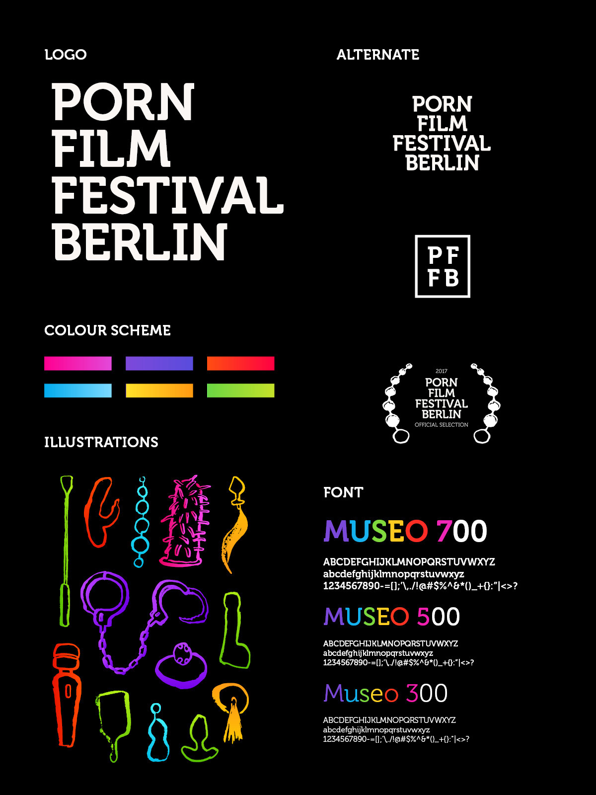 Working with Moira Lam, I rebranded the Pornfilmfestival Berlin—Germany’s premier independent festival dedicated to sexuality, feminism, and queer politics. Our goal was to create a visual identity that matched the festival’s artistic and alternative approach to the genre. We developed a comprehensive design suite, including the official logo, A1 posters, social media assets, a promo trailer, and a 96-page festival catalogue.